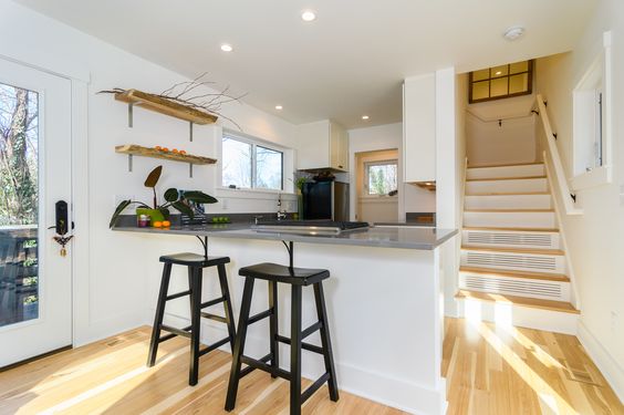 Този въпрос е уместен, защото, погледнато строго научно, едноетажното жилище в многоетажната сграда е винаги по-благоприятно за обитаване в сравнение с двуетажното. И все пак при определени условия домът на два етажа се налага с качества, които липсват на едноетажния. Най-често това се случва в секция с три жилища на стълбище. Средното жилище е малко и няма желаещи за него. А не е ли възможно да се свържат две малки жилища едно над друго ? Като отговор на този естествен въпрос се явява двуетажното жилище с едностранно изложение. Желанието с вътрешна стълба да се отиде до втория етаж на жилището обаче в някои случаи открива възможности да получим изложение на част от жилището в противоположната страна на сградата. А ако вместо еднораменна въведем двураменна стълба, бихме могли да построим един дом на няколко нива (на полуетажи). Артес проектанта на сградата е създал от 6 гарсониери в първоначалния проект 3 двуетажни жилища. Те се характеризират с малка ширина към фасадата, но с достатъчна дълбочина. Това е предопределило мястото на стълбата в дъното на дневната.Стълбата в дневната е винаги функционален компромис, чрез който обаче дневната получава нов интересен акцент.