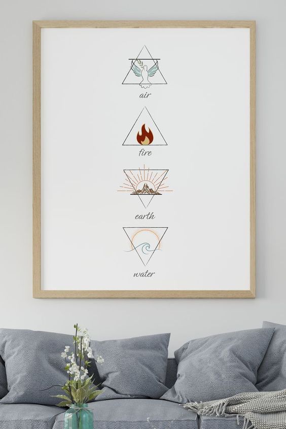 Символните послания, материализирани в нашия бит и интериор са в непрекъсната и често неосъзната връзка с първоматериите Огън, Вода, Въздух и Земя – укротени, общуващи и допълващи се, отразяват и утвърждават живота в нашия дом, като всяка ни подлага по своему. Така присъствието им общо ни създава усещане за спокойствие и сигурност, макар че въздействието им е различно.Огънят