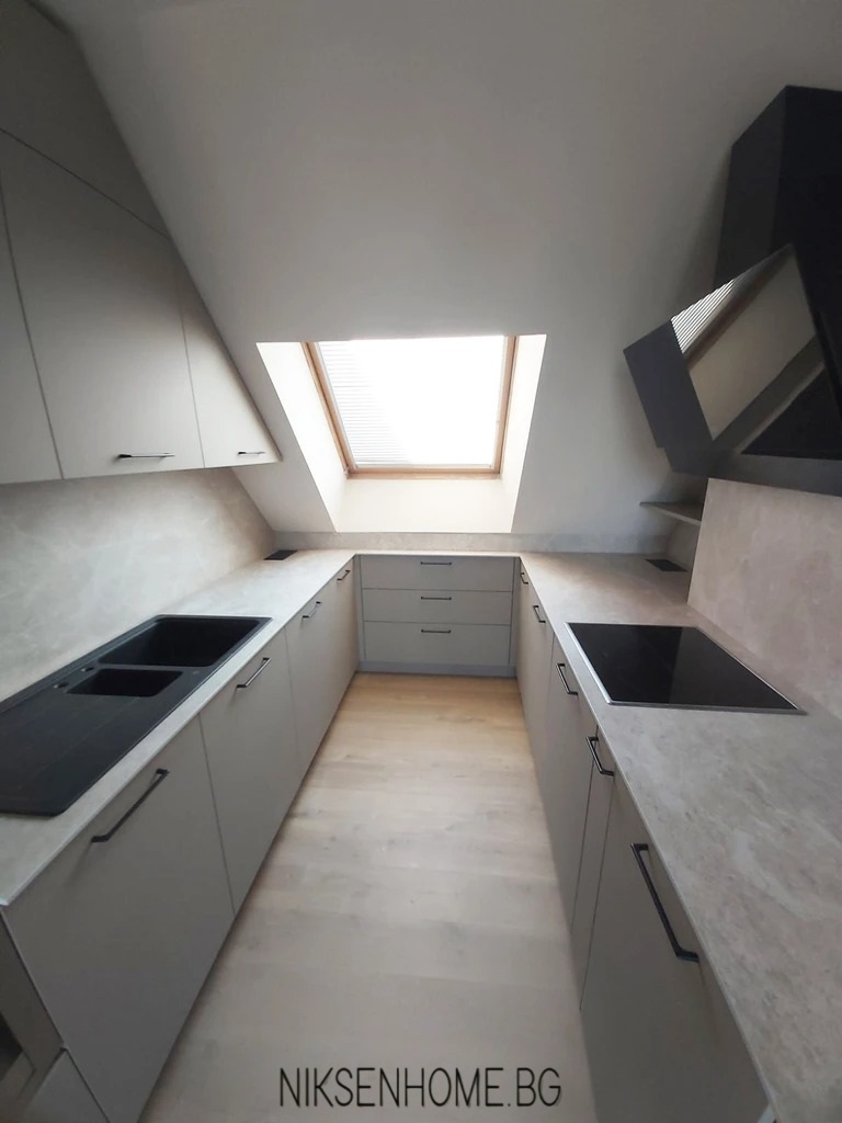 Минималистичното обзавеждане е предпочитан избор на дизайнерите Niksen Home Интериорен дизайн при декорирането на мансардата.
