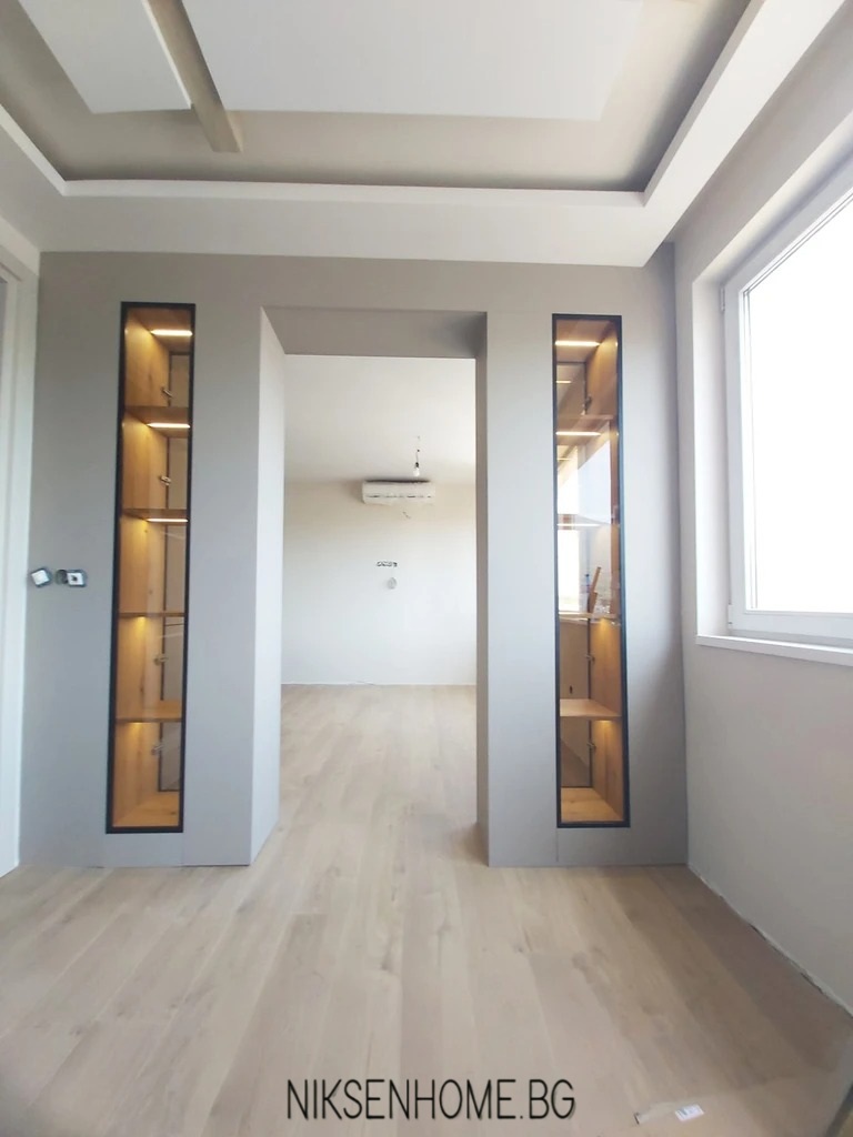 Създадохме индивдуален интериорен проект на мансарда, обединяващ модерен интериорен дизайн, функционално разпределение и светлината от естествени и изкуствени източници. Всеки детайл в този модерен тавански апартамент има своята мисия, а крайният резултат е отличен!