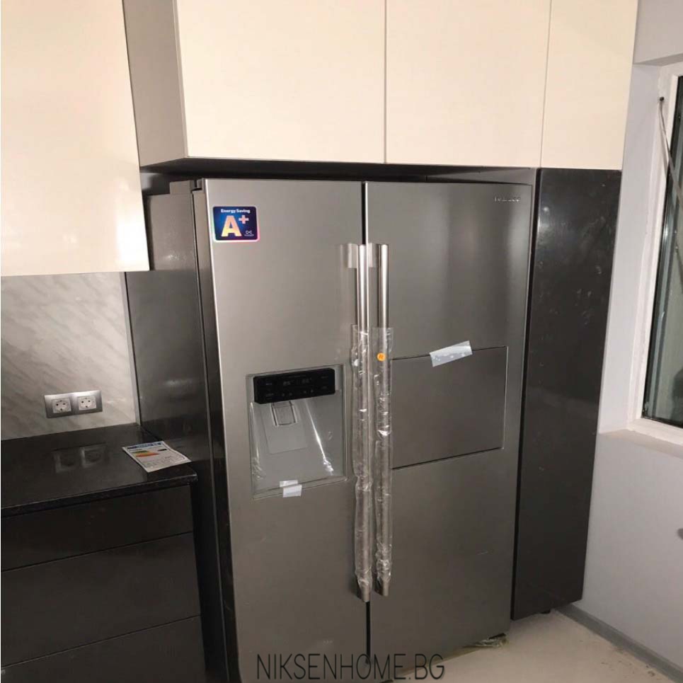 Модерно съчетание на тъмно сиви гланцови вратички ЛМДФ с горна част крем, което се откроява и придава светла визия на помещението. Плота и гърба с мраморни елементи създават игрива нотка и раздвижват цялостната концепция на помещението. Именно това прави една кухня интересна и ви привлича да прекарвате времето си в нея, за да творите. Нима готвенето не е изкуство?