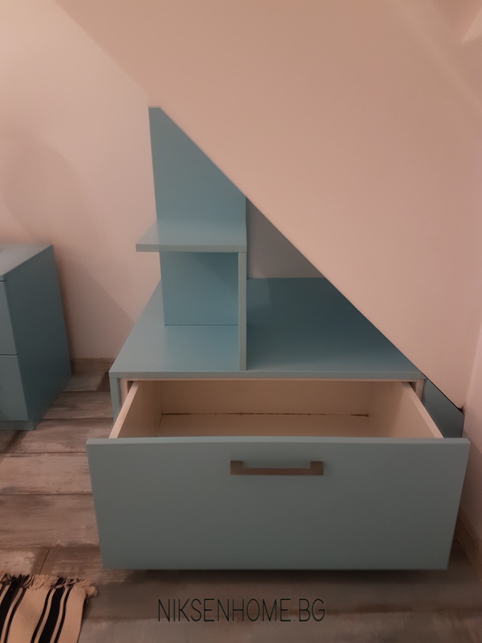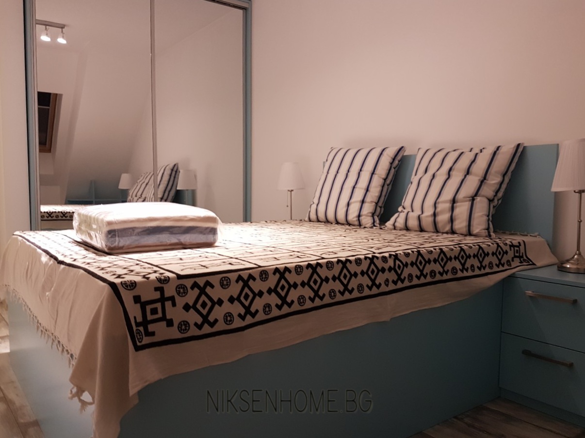 Тук никога няма да Ви е студено. Малкото кокетно жилище Ви изпълва с настроение, мирис на море вечерта и свежест на пролет на сутринта. Мансардата е жилище, което изисква смела комбинация на цветове и форми, за да получим уюта на дома. Представен е в перфектна комбинация от пастелни цветове, който да освежат, и пресъздадат илюзия за по – голямо пространство. Мебелите са изработени с подходяща големина и форма, така че да не заемат голяма площ. Същевременно достатъчно удобни за използване в натовареното ежедневие на забързания град.